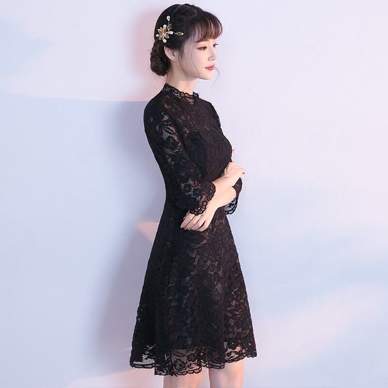 ☆SALE☆ 黒レース半袖パーティードレス ミニ 結婚式 二次会 ブラック