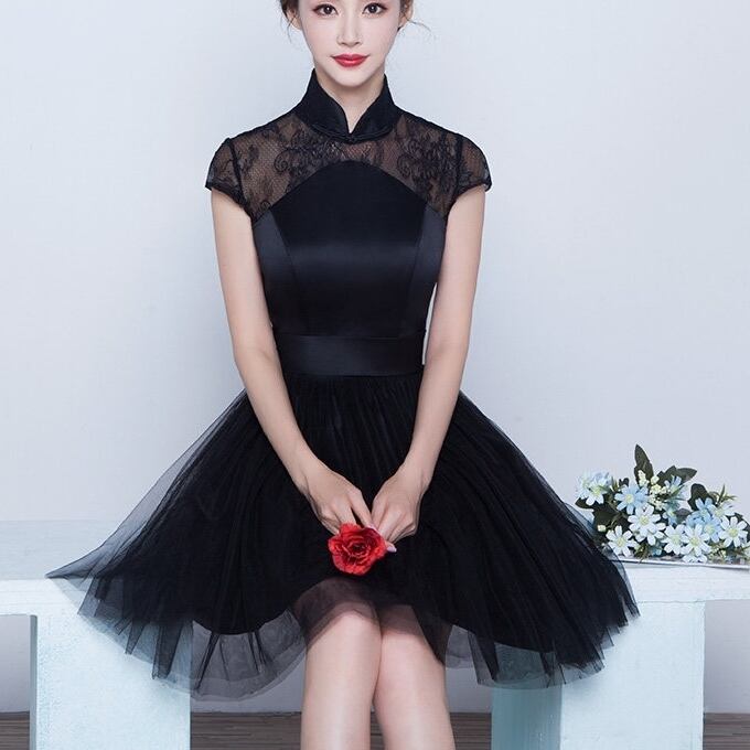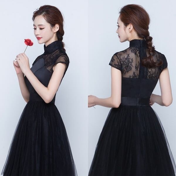 ☆SALE☆ 黒透けレース切り替えパーティードレス ブラック 結婚式 衣装