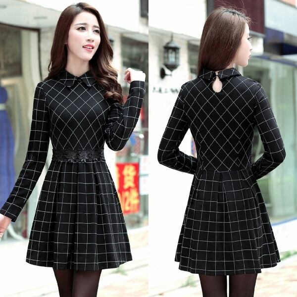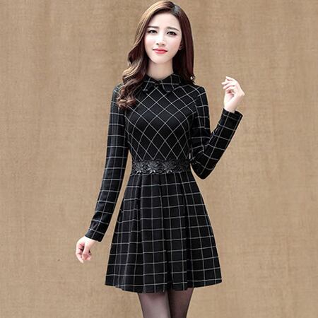 ☆SALE☆ お上品 チェックプリーツワンピース 冬 長袖 デート クリスマス