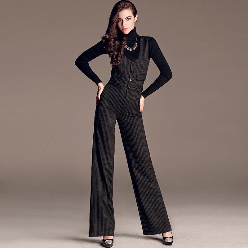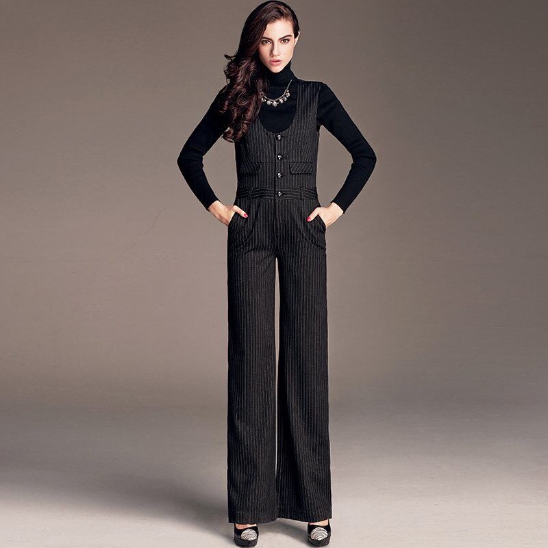 ☆SALE☆ トラッド ストライプオールインワン サロペット ブーツカット