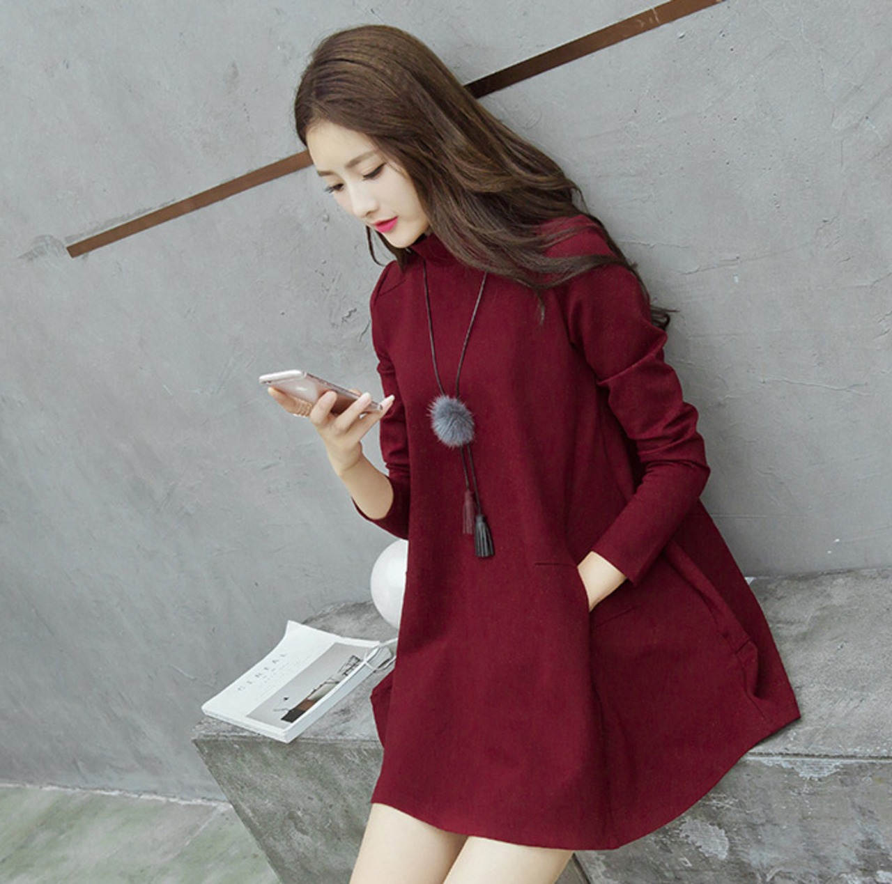 ☆SALE☆ ボトルネック フレアワンピース 秋冬 長袖 マタニティ 妊婦