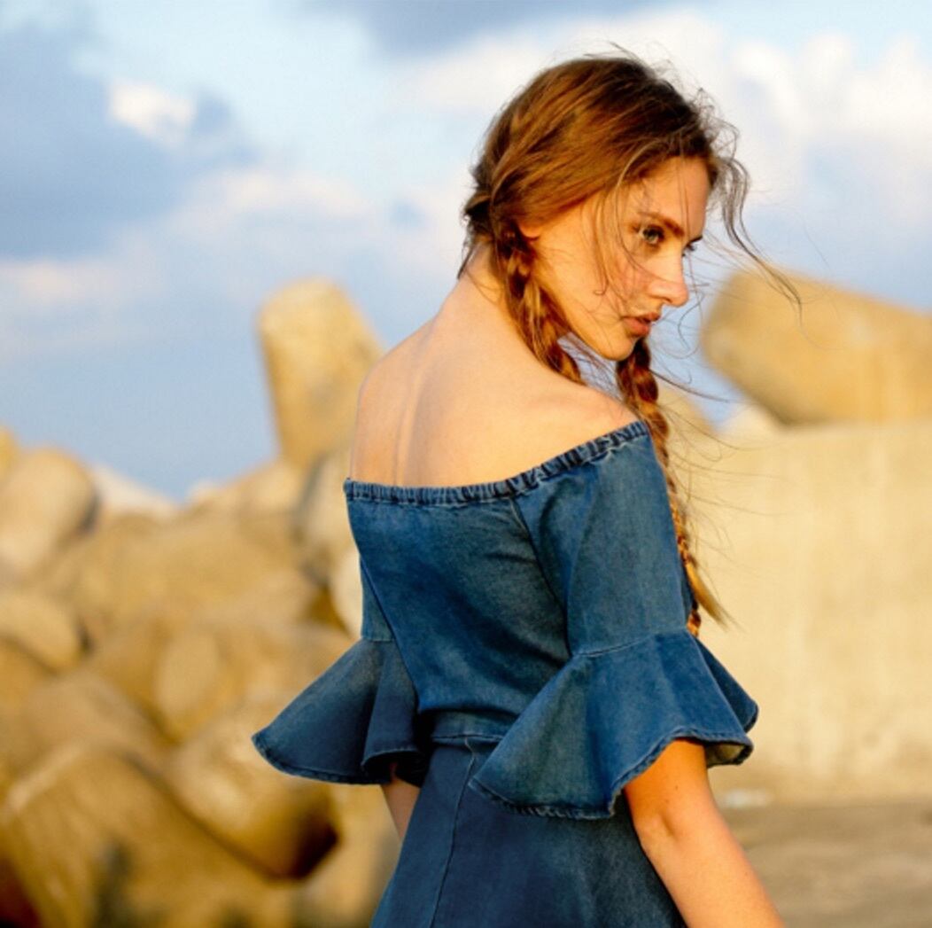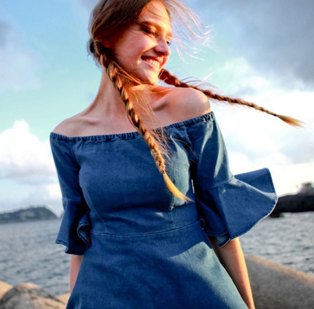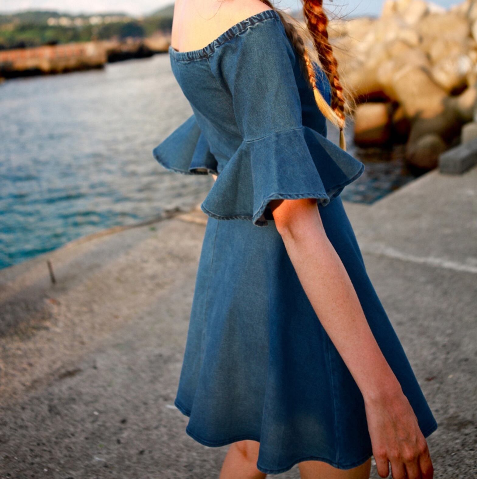 ☆SALE☆ 大流行!デニムオフショルダーのフレアワンピース デート