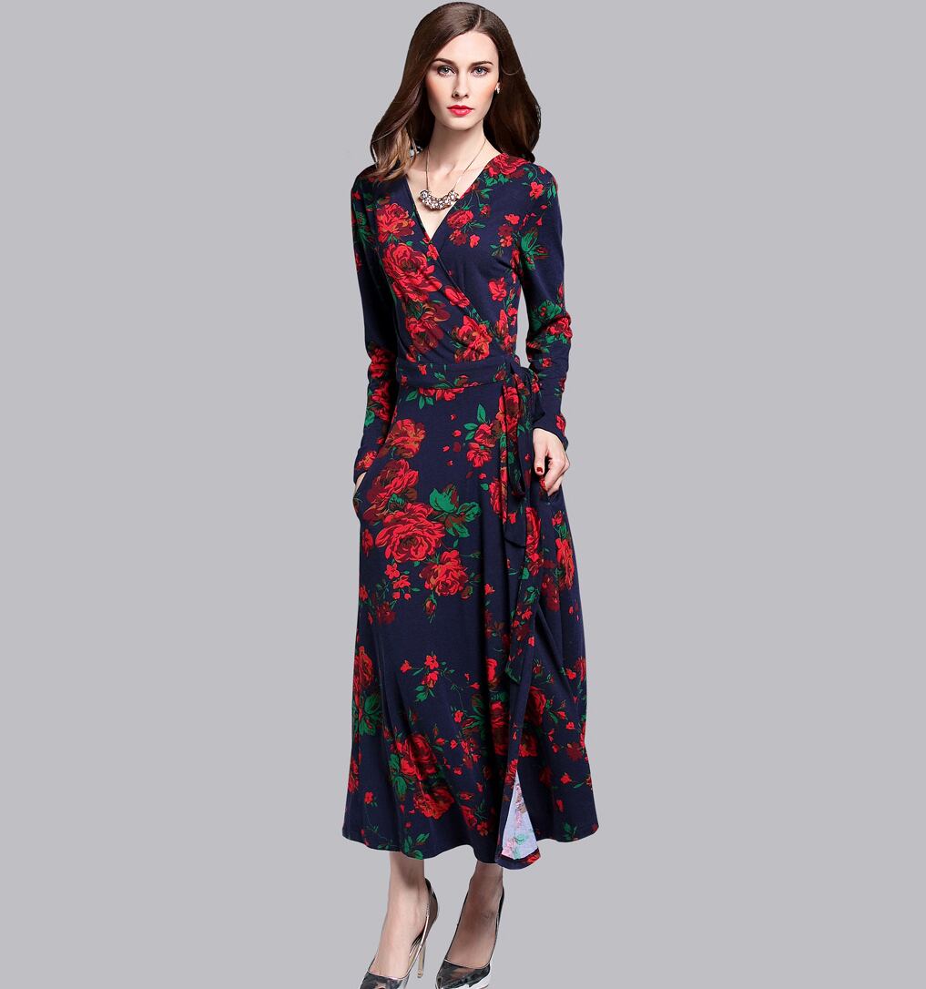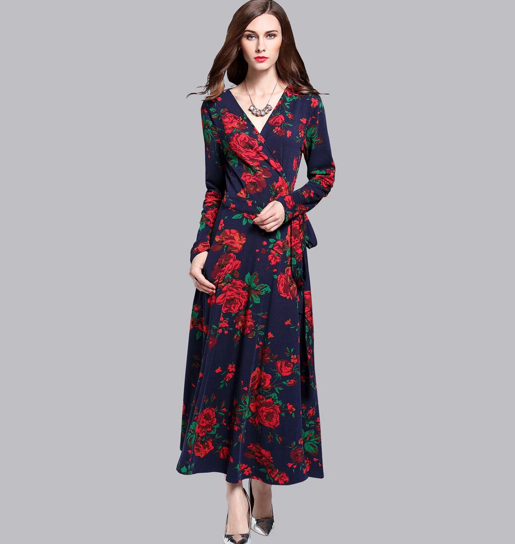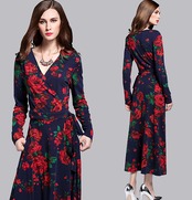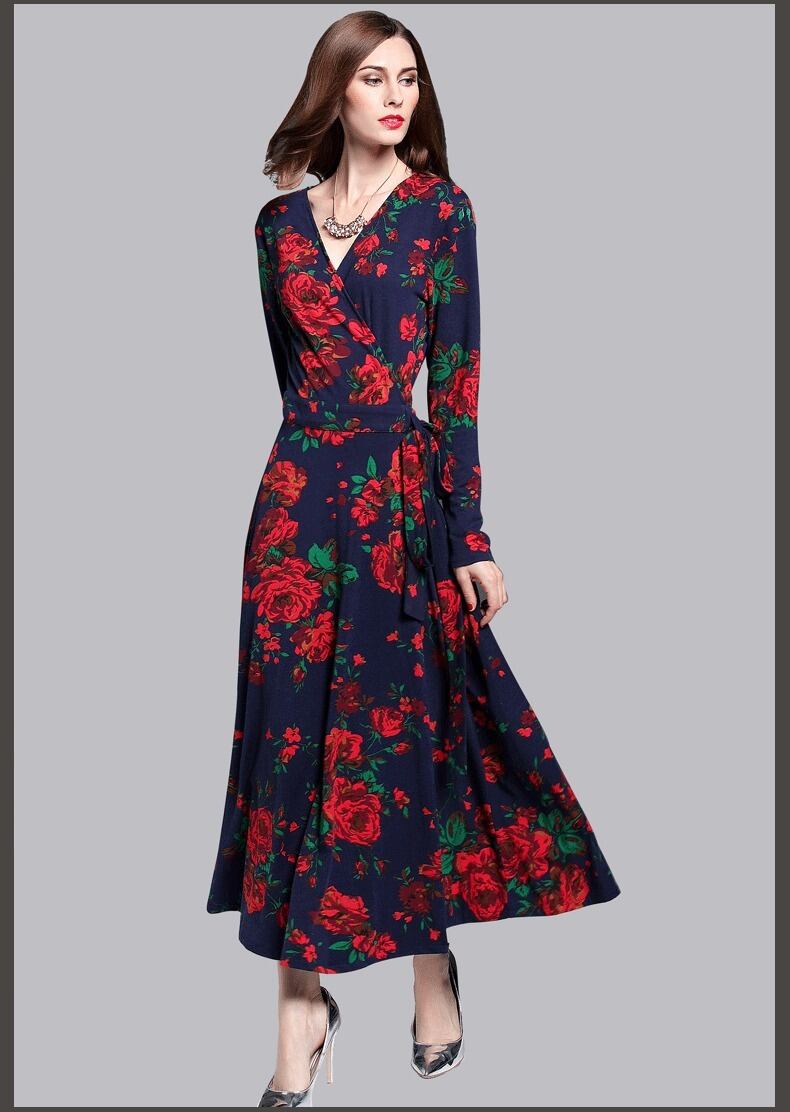 ☆SALE☆ 大胆花柄がオシャレ 長袖マキシワンピース 秋冬 パーティー