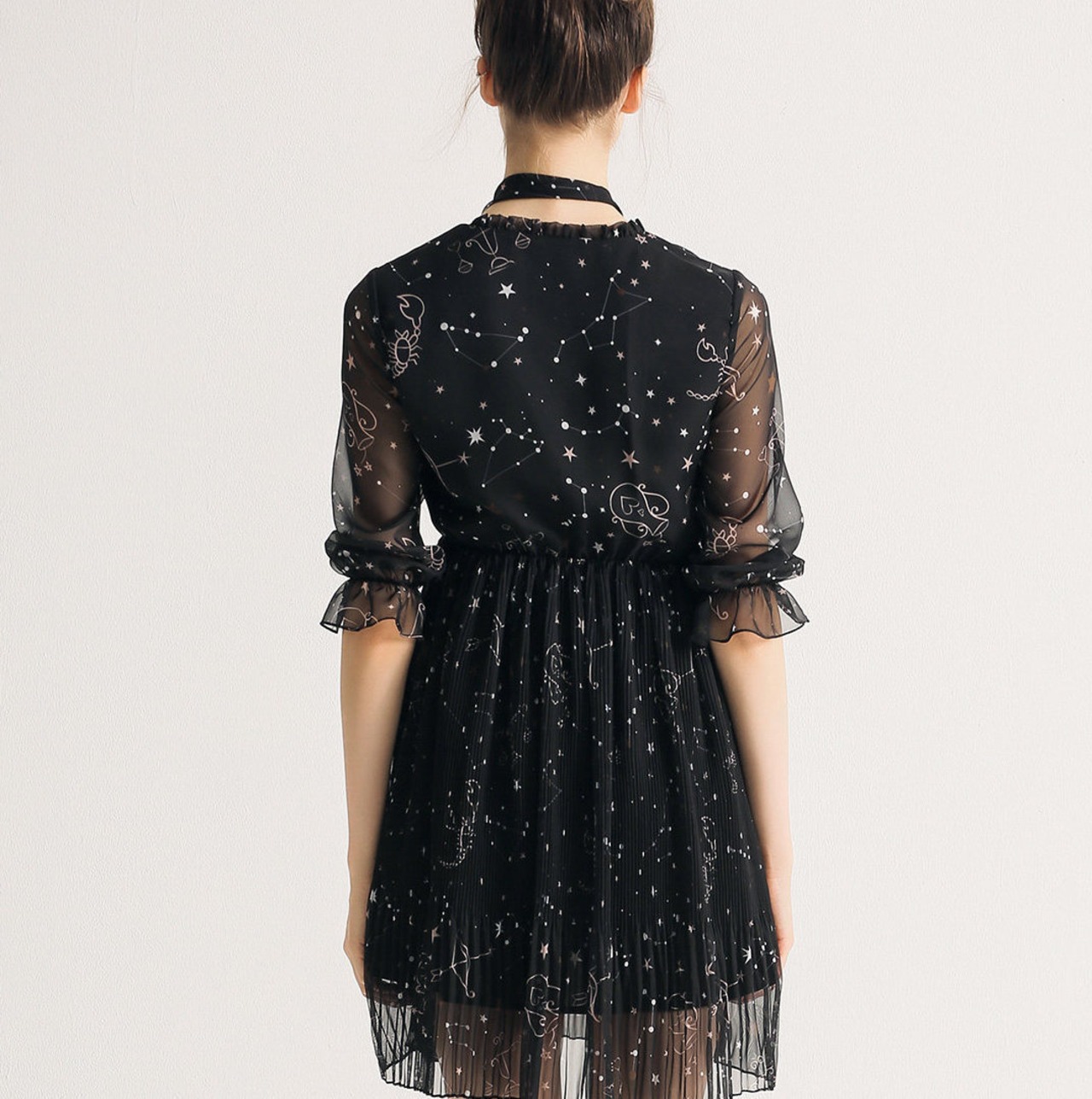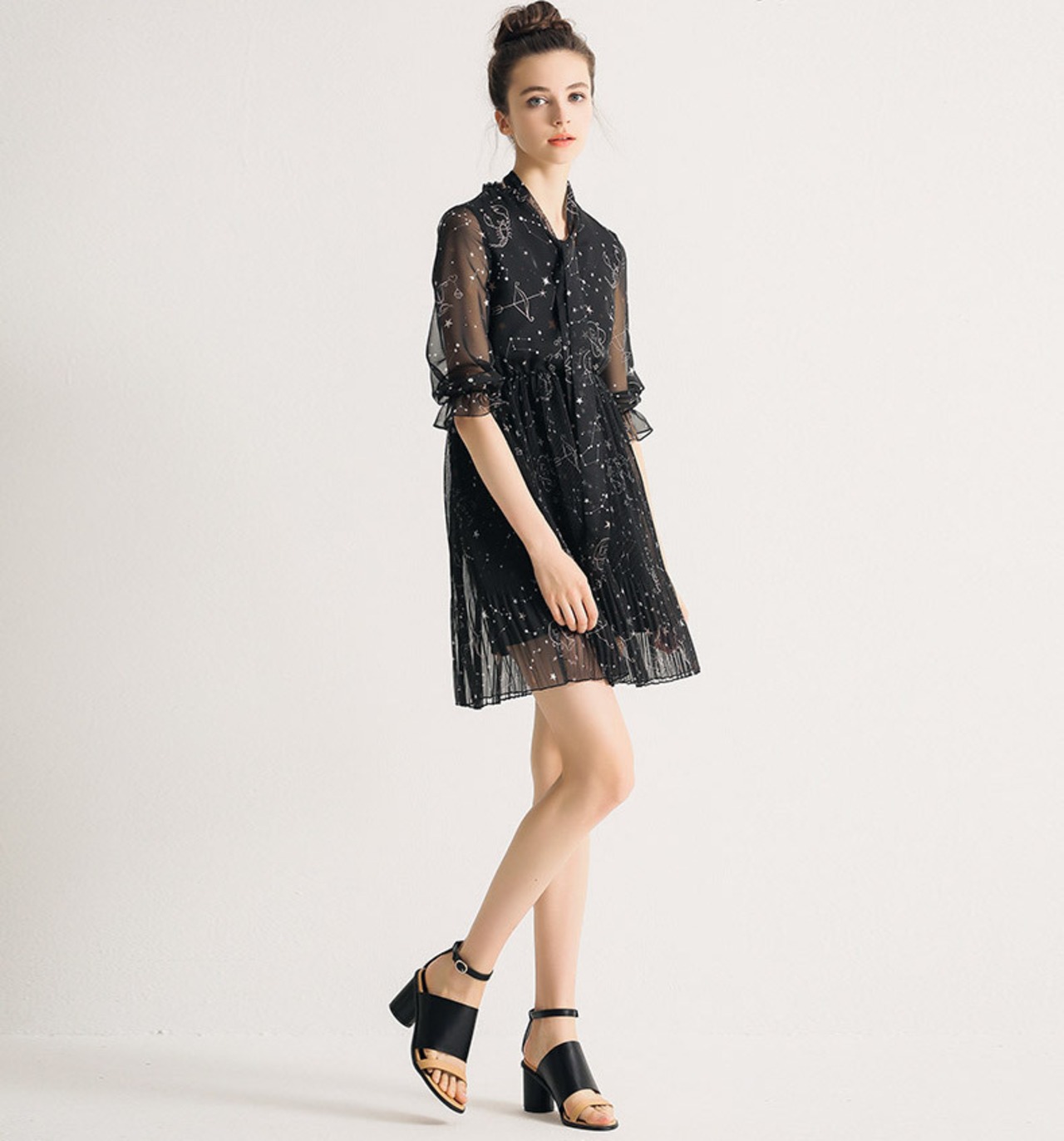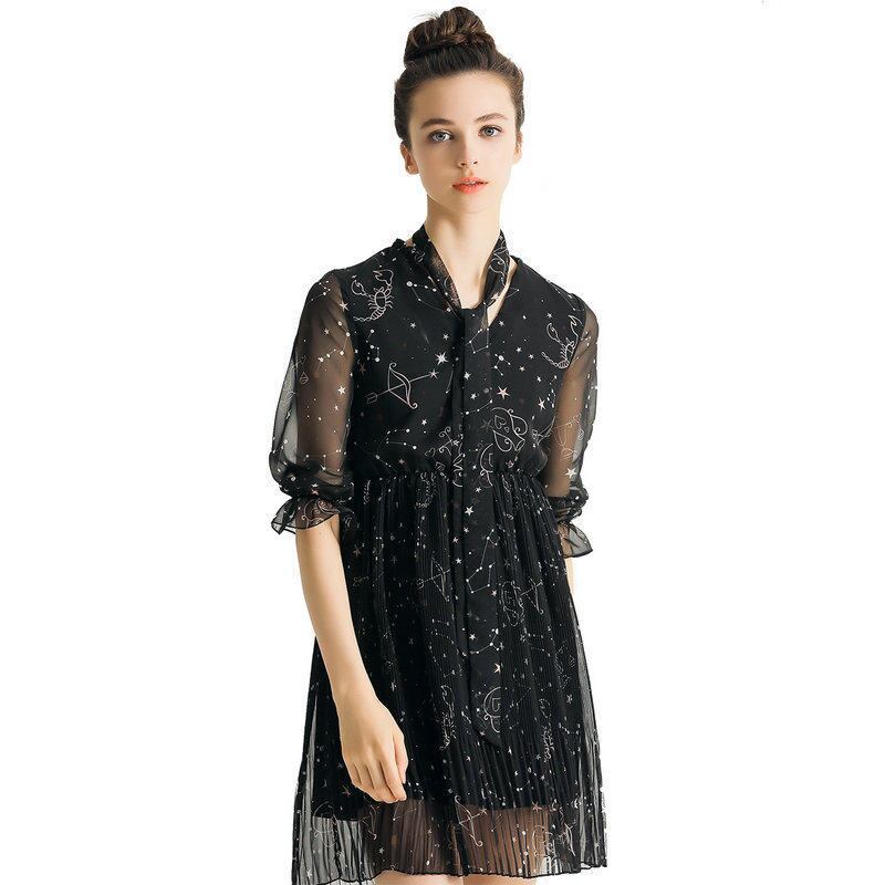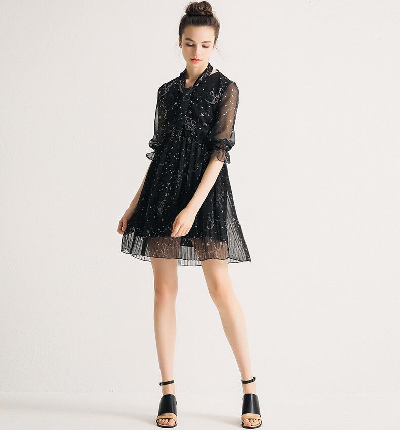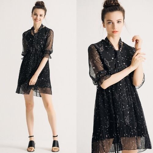 ☆SALE☆ 星柄可愛い透け感フレアワンピース デート パーティー 結婚式