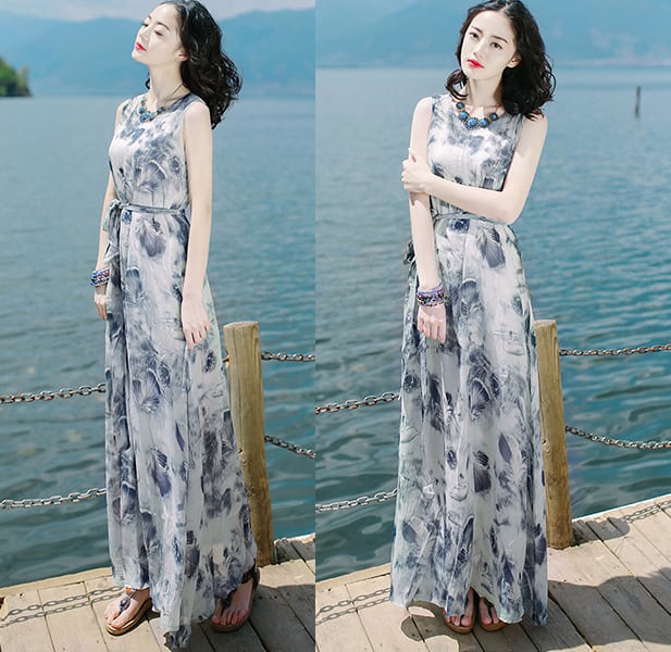 ☆SALE☆ 爽やかタンクトップマキシワンピース 夏 リゾート パーティー