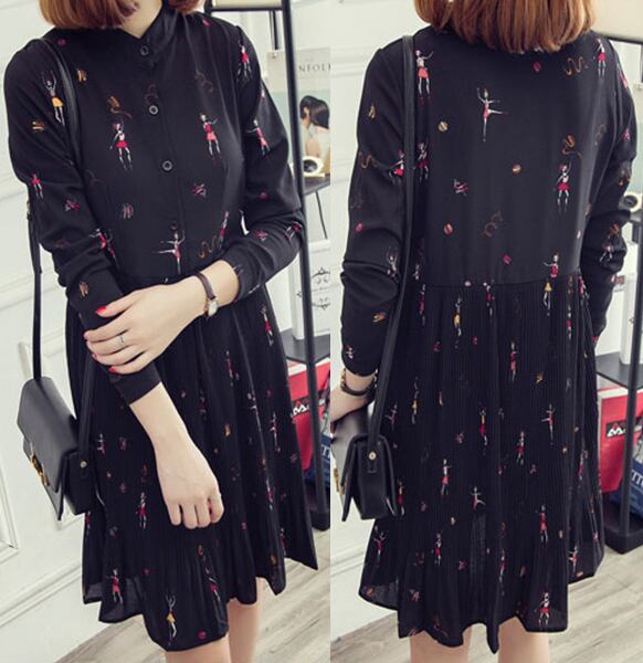 ☆SALE☆ 秋冬 長袖 総柄ワンピース 膝丈 可愛い ガーリー オシャレ