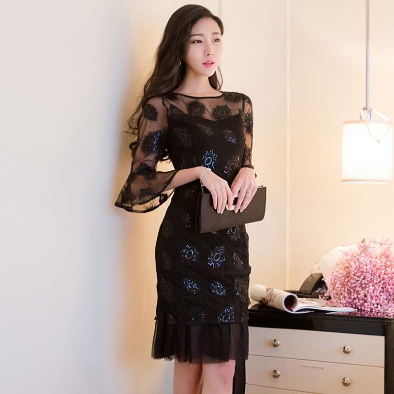 ☆SALE☆ 透けセクシーなフレアワンピース 結婚式パーティー演奏会衣装