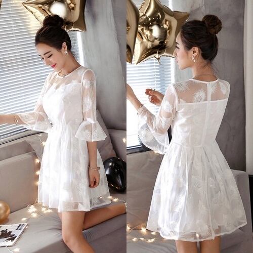 ☆SALE☆ 透け感が大人っぽい!シックフレアワンピース 演奏会 結婚式