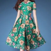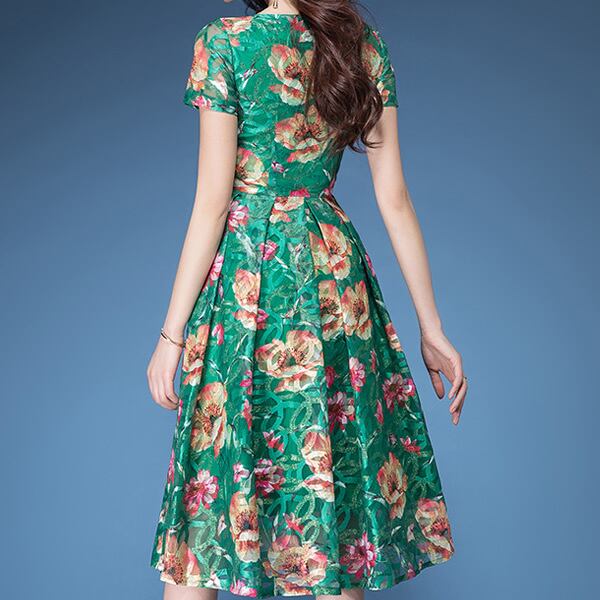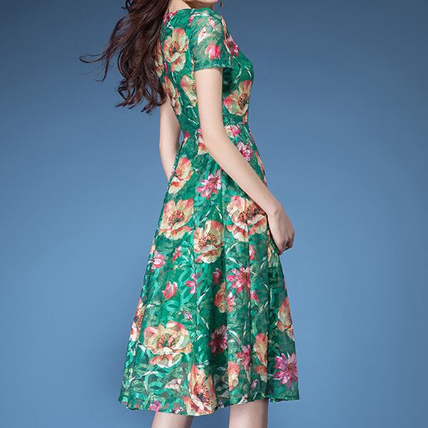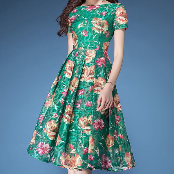 「破格」 ワンピース レディース 花柄 半袖 フレアスカート デート