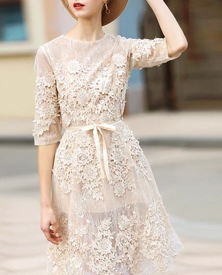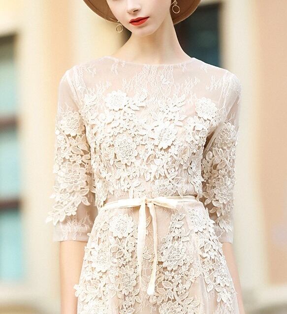 「破格」 ワンピース 総レース 刺繍 エレガント 結婚式 大きいサイズ