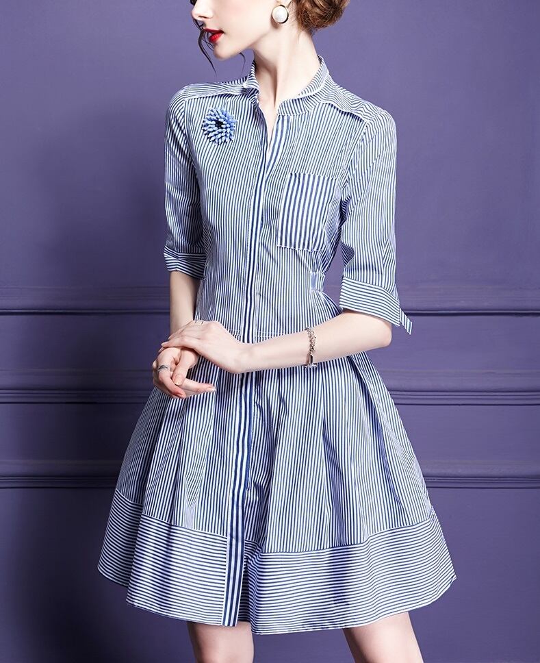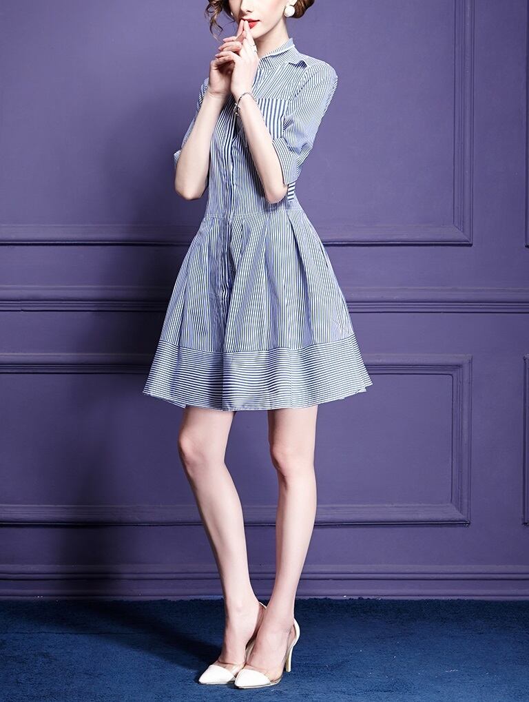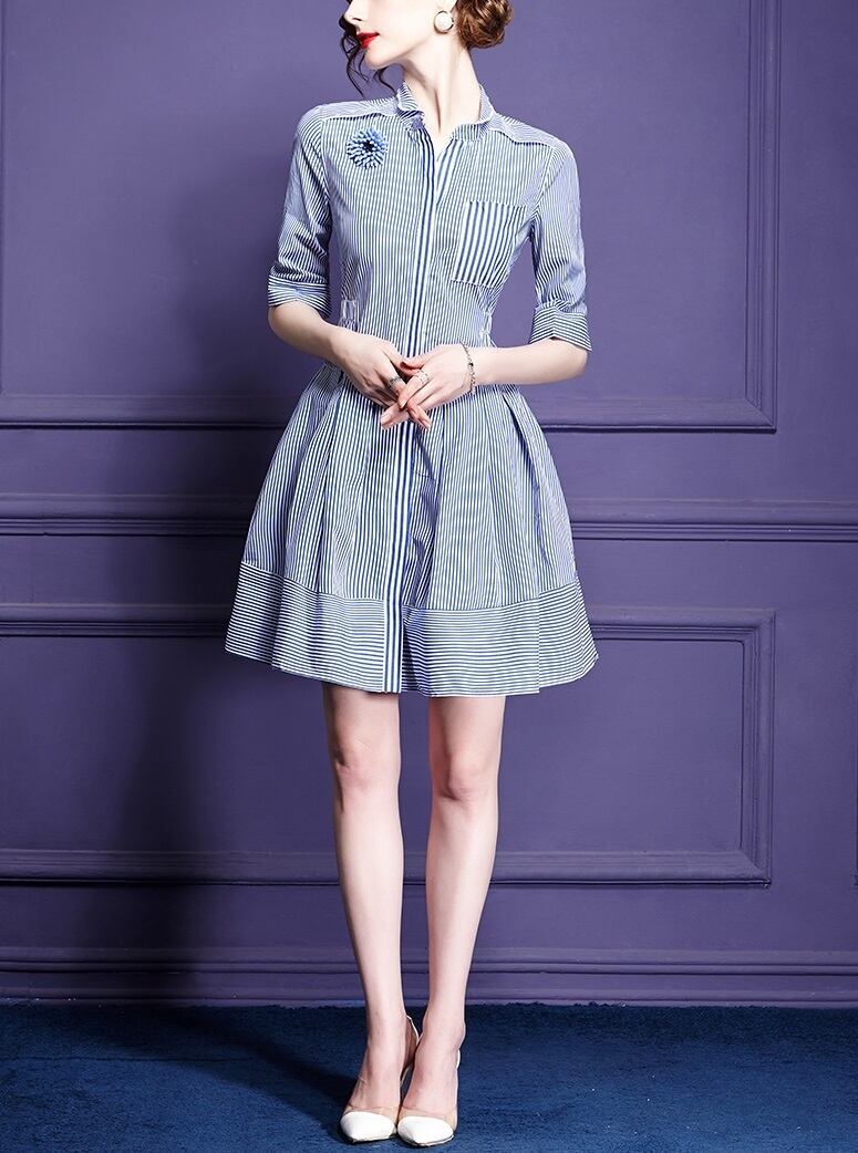 「破格」 ワンピース シャツワンピ ストライプ 爽やか フェミニン 通勤