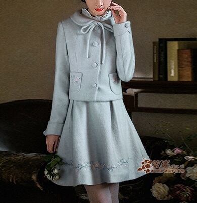 「破格」 ツーピース 刺繍 ラウンドカラー リボン ガーリー フェミニン