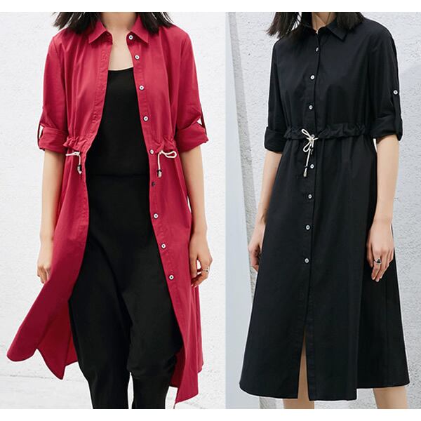 「破格」 ワンピース レディース シャツ 七分袖 ロング丈 シンプル