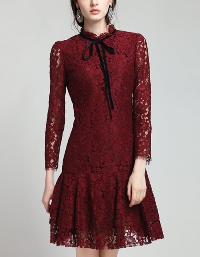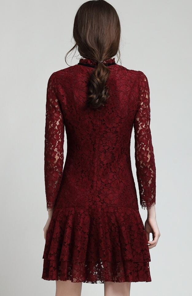 「破格」 ワンピース 総レース フラウンス エレガント タイト 通勤 デート
