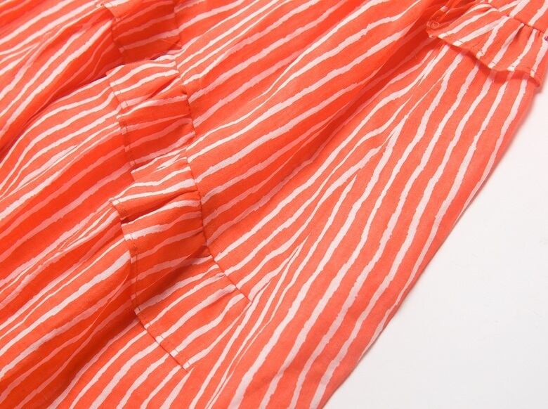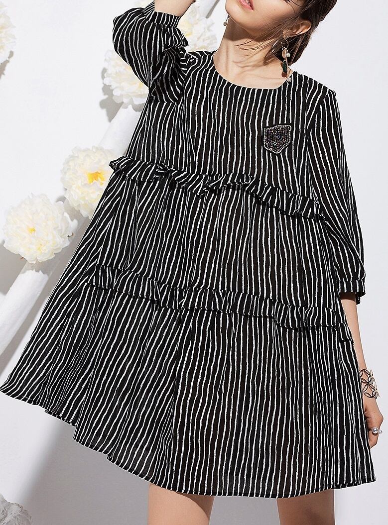 「破格」 ワンピース リネン ピンストライプ フリル Aライン ガーリー