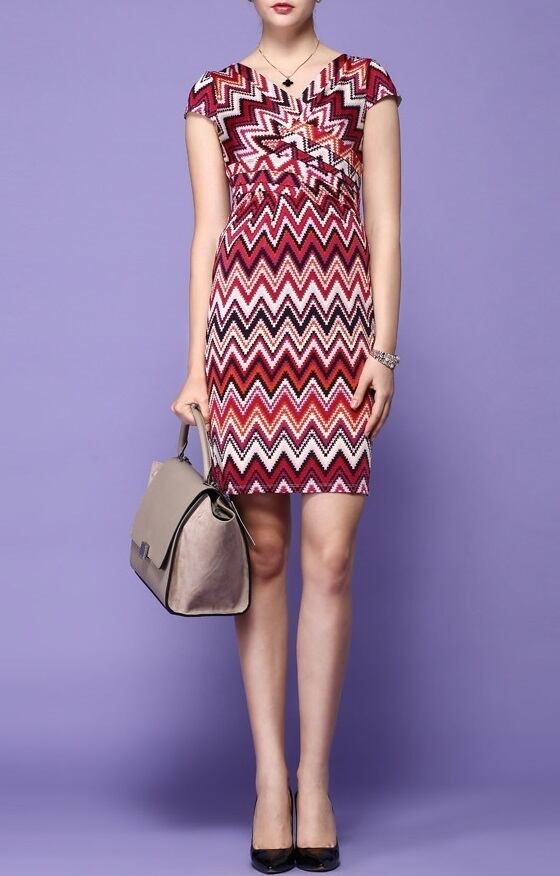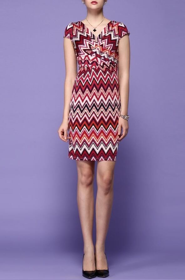 「破格」 ワンピース キャップスリーブ シェブロンストライプ おしゃれ