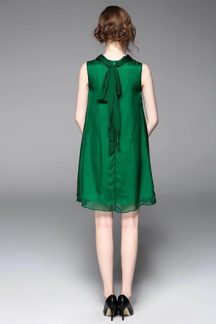 「破格」 ワンピース シルク ネックリボン エレガント 結婚式 パーティー