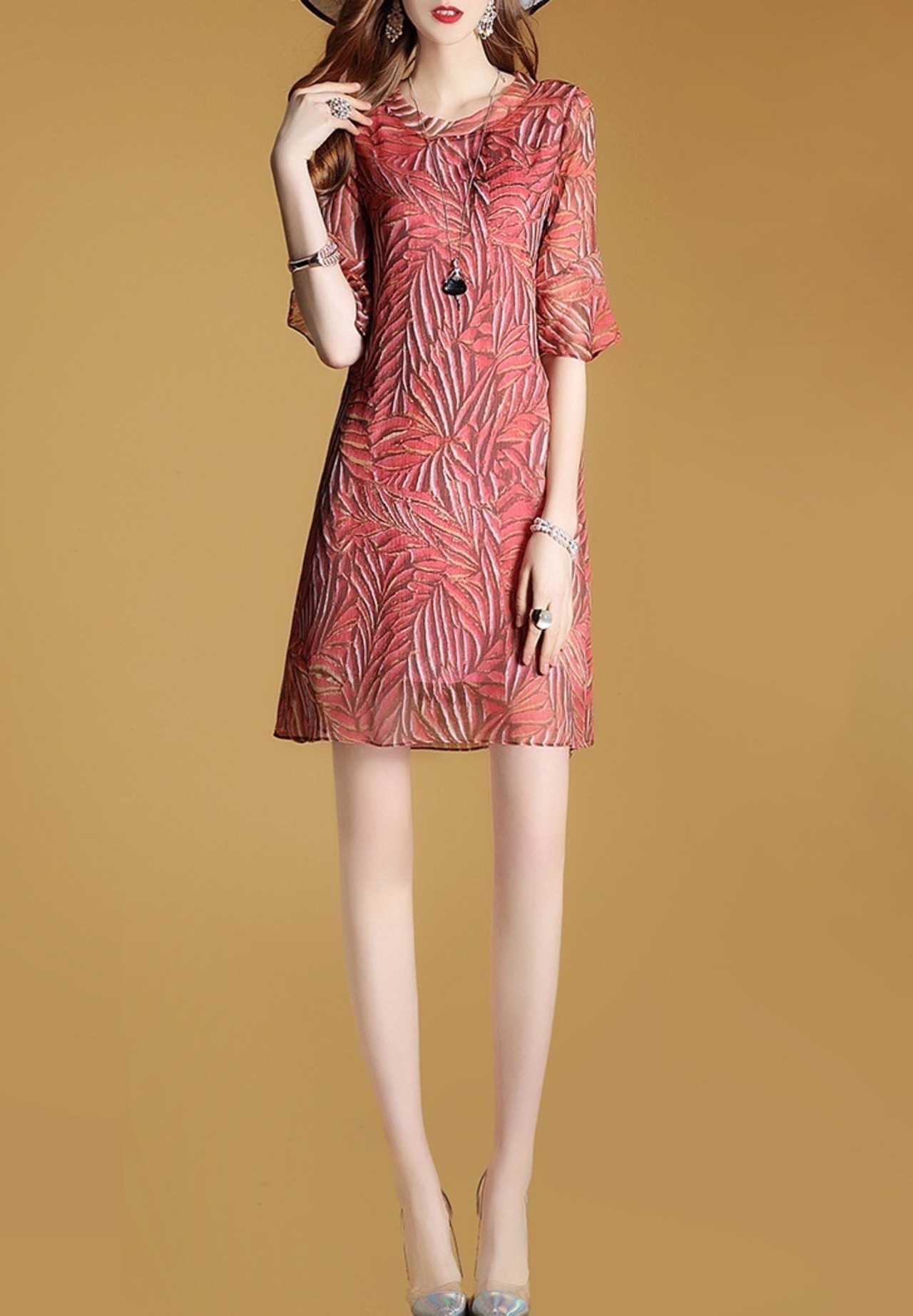 「破格」 ワンピース シフォン Aライン ボタニカル エレガント 通勤