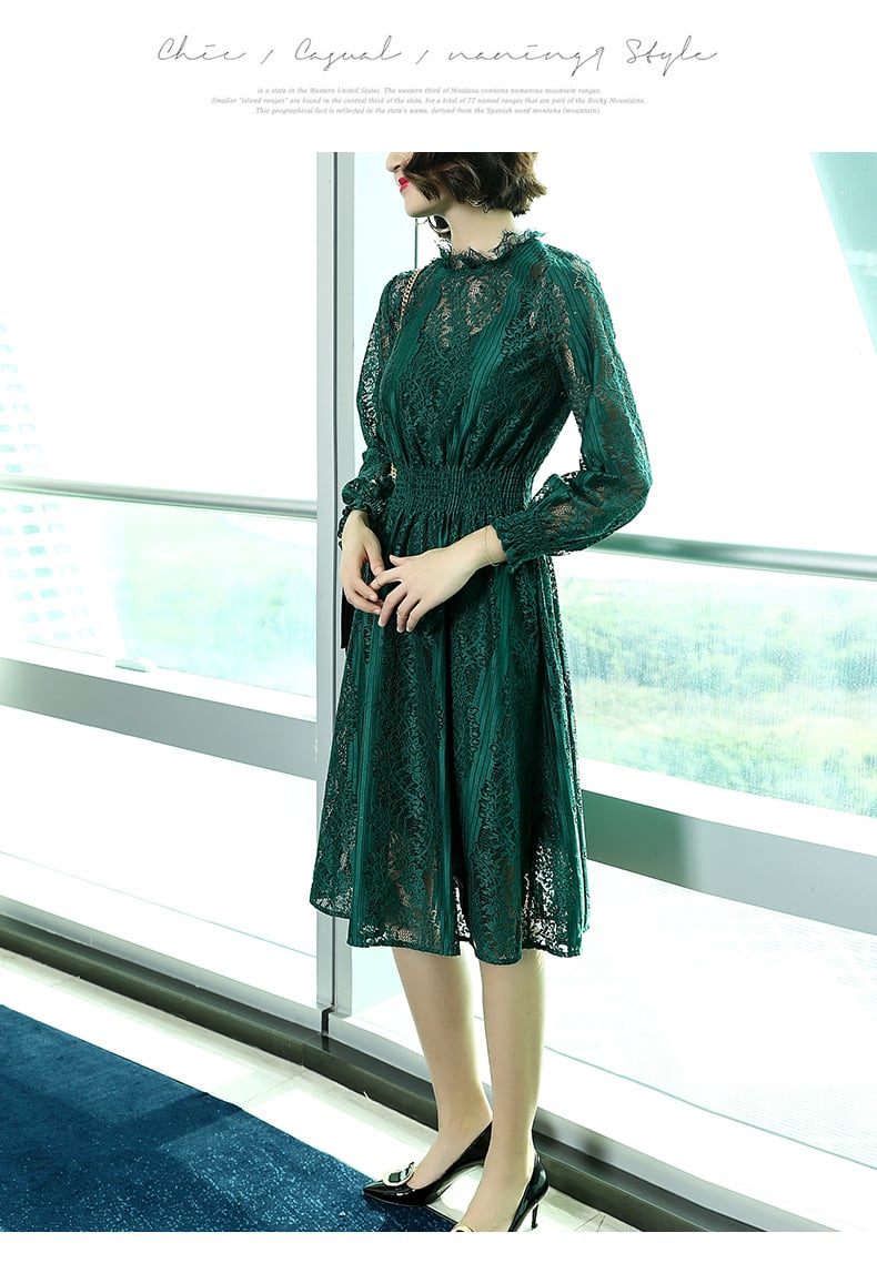 「破格」 ワンピース 総レース ラウンドネック ボタニカル エレガント