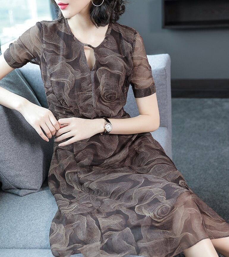 「破格」 ワンピース シフォン ショートスリーブ 軽やか エレガント 通勤
