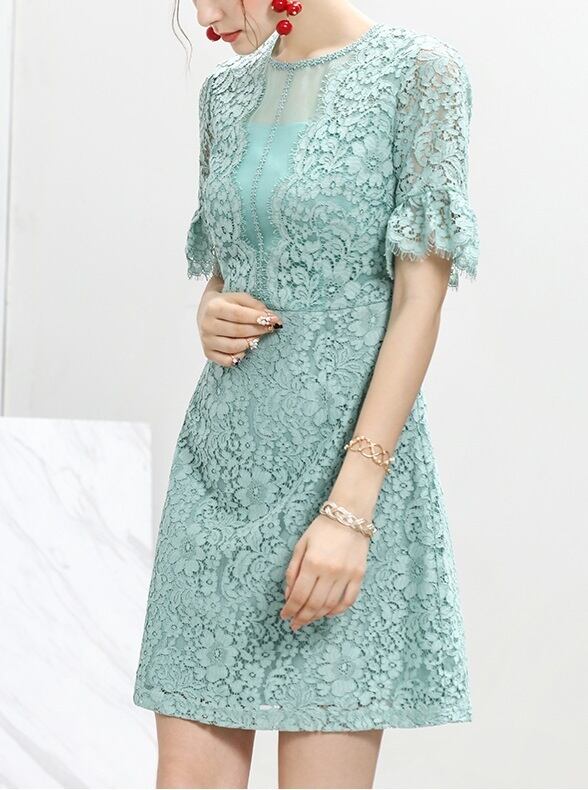 「破格」 ワンピース 総レース ショートスリーブ エレガント パーティー