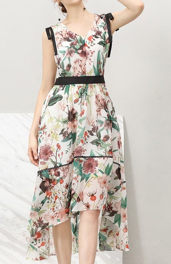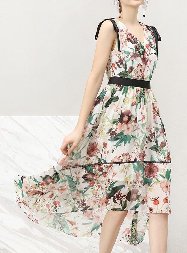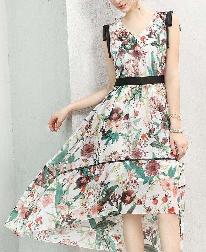 「破格」 ワンピース Vネック フィッシュテール フラワー フェミニン