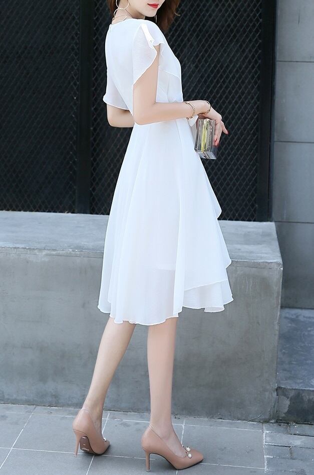 「破格」 ワンピース シフォン フレアスリーブ ラッフル フェアリー