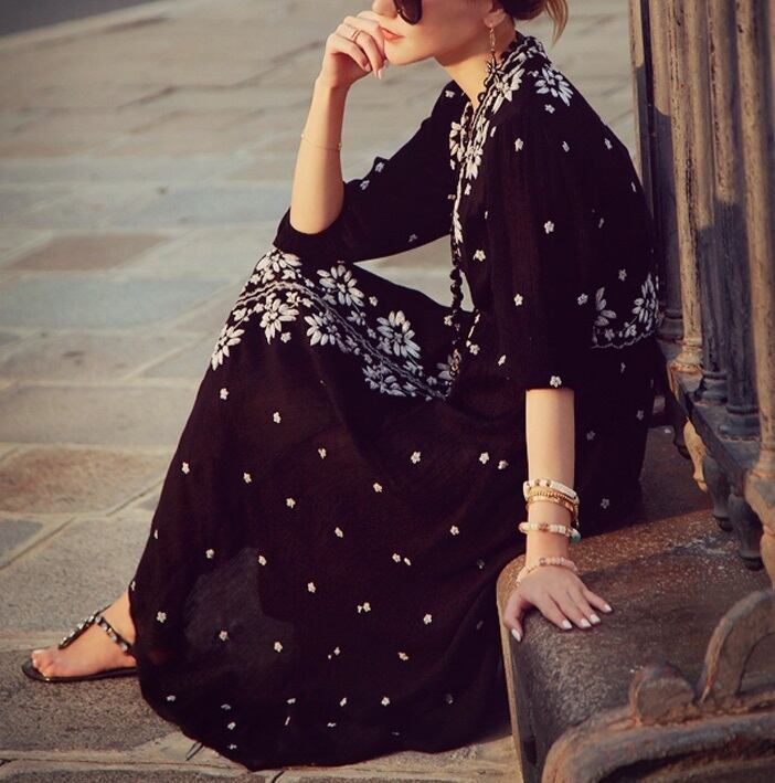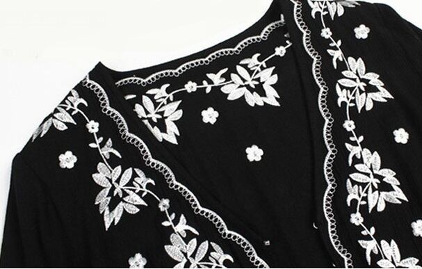 「破格」 ワンピース 刺繍 Vネック ボヘミアン ロング丈 ビーチリゾート