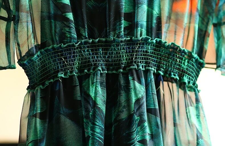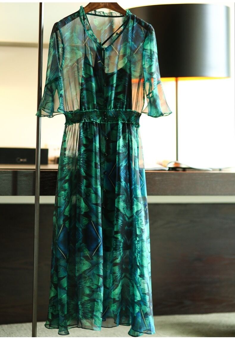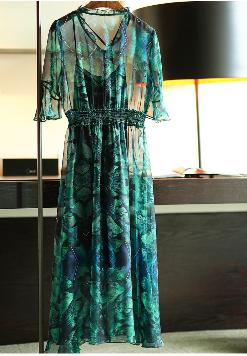「破格」 ワンピース シフォン ベルシェイプド スリット ボタニカル 通勤