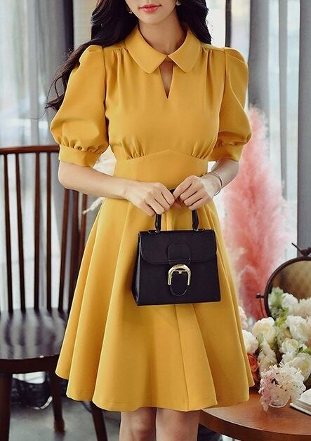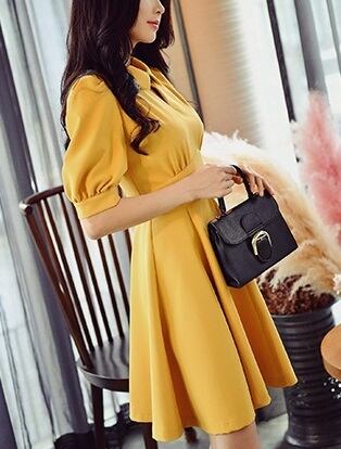 「破格」 ワンピース スタンダードカラー パフスリーブ フェミニン 通勤