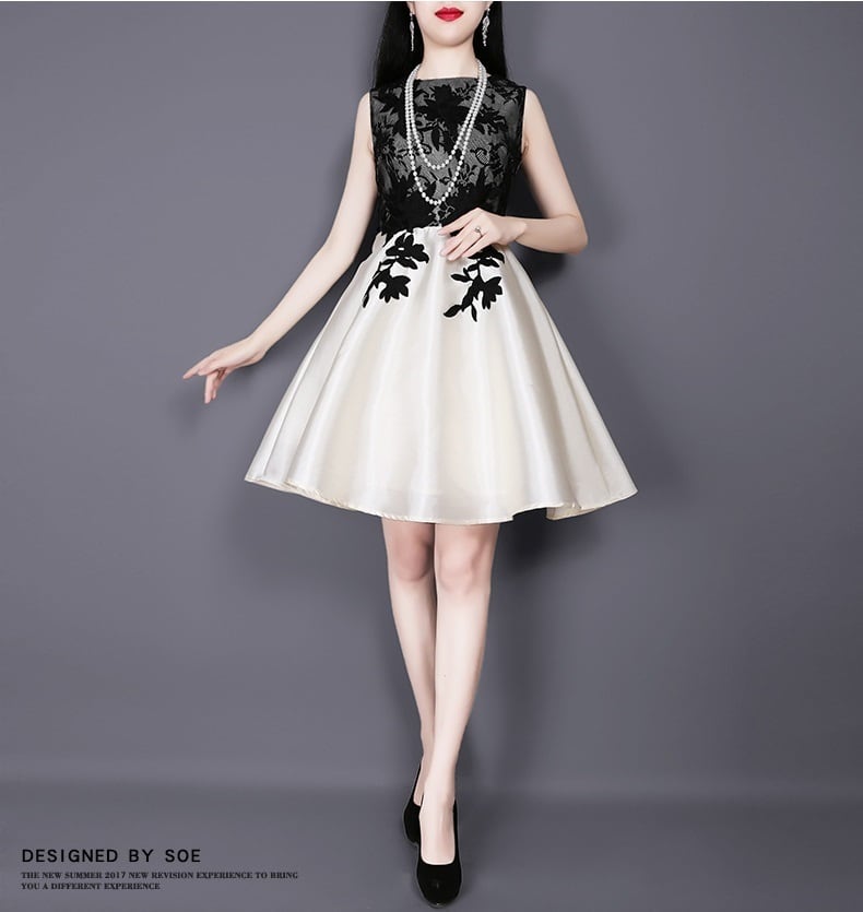 「破格」 ドレス ブラックレース ノースリーブ エレガント パーティー