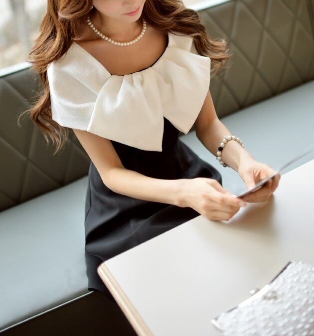 「破格」 ワンピース リボン タイト フェミニン 結婚式 二次会 パーティー