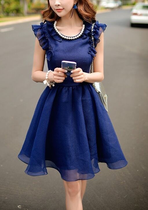 「破格」 ドレス チュール ラウンドネック ロゼットフリル 結婚式 二次会