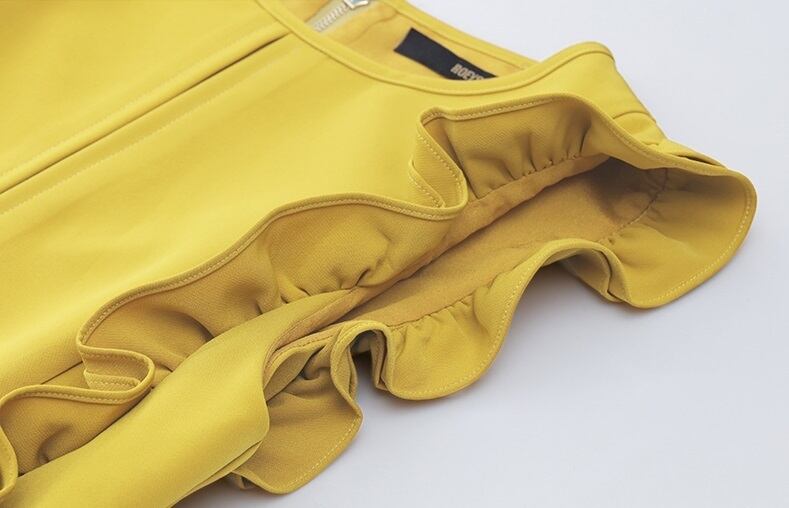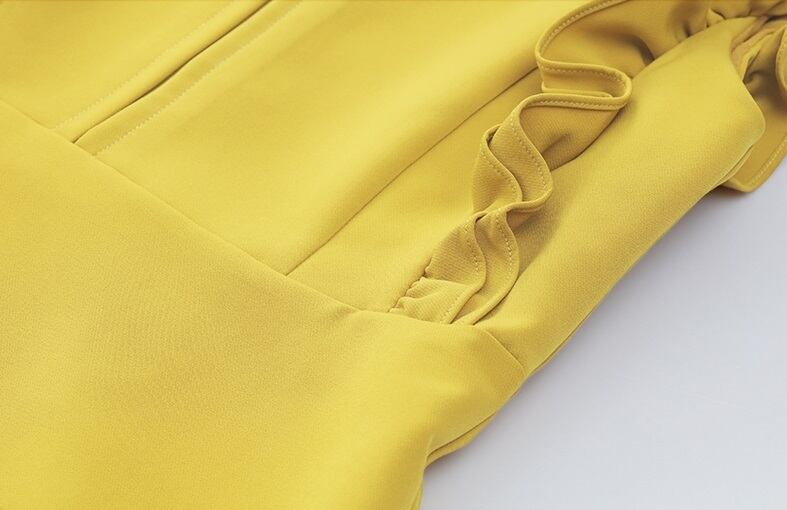 「破格」 ワンピース ラウンドネック ノースリーブ フリル イエロードレス