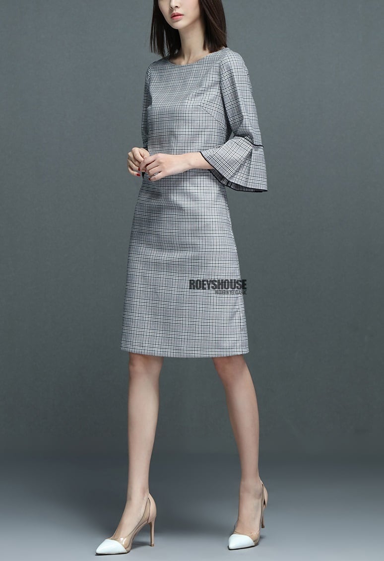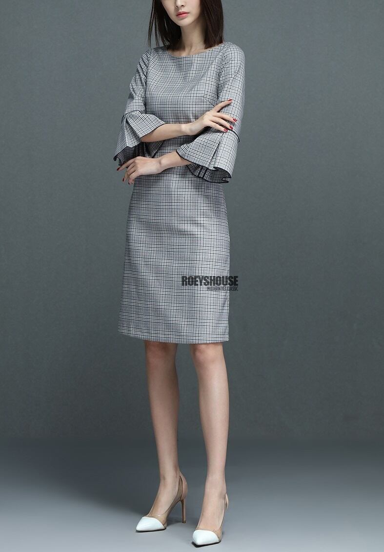 「破格」 ワンピース ベルシェイプドカフス チェック柄 エレガント 通勤