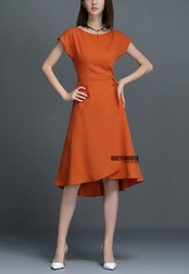 「破格」 ワンピース フレンチスリーブ アシンメトリー チューリップ