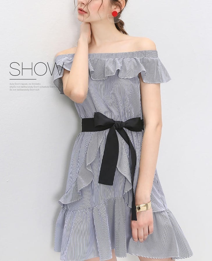 「破格」 ワンピース オフショルダー ティアードスカート ガーリー デート