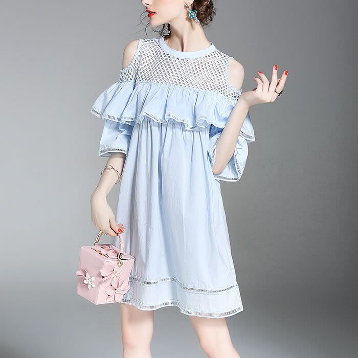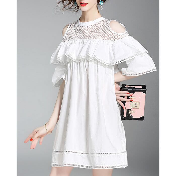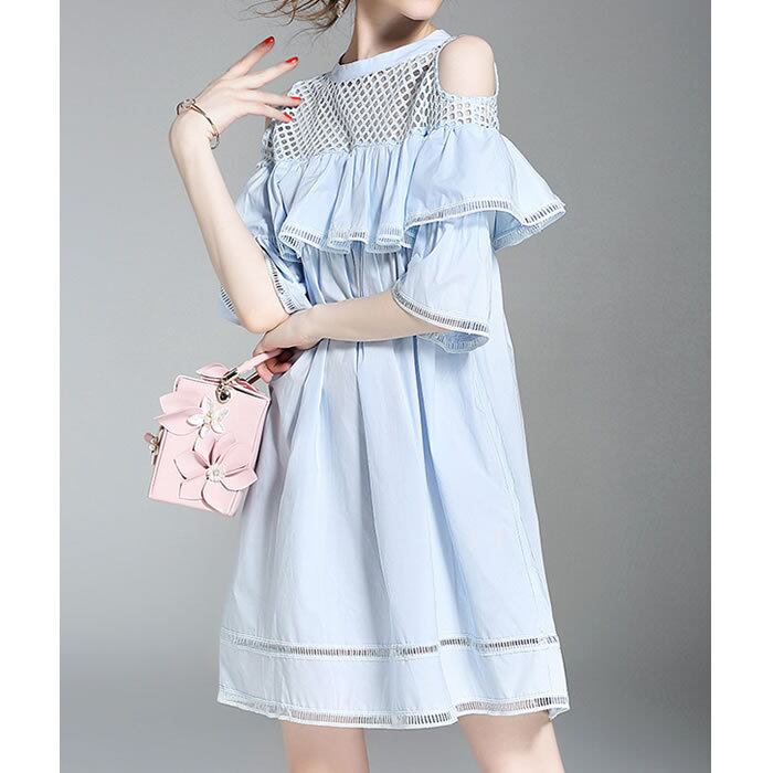 「破格」 ワンピース レディース フリル コットン 肩出し デート