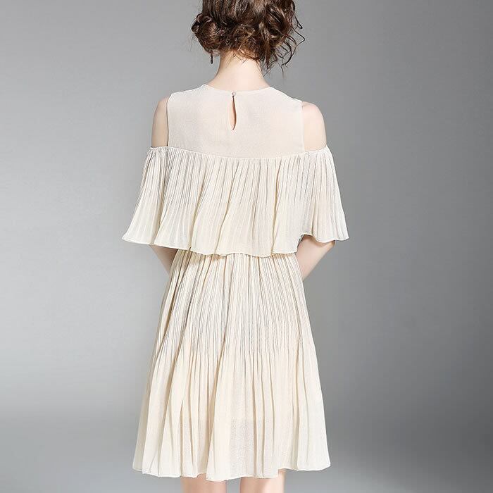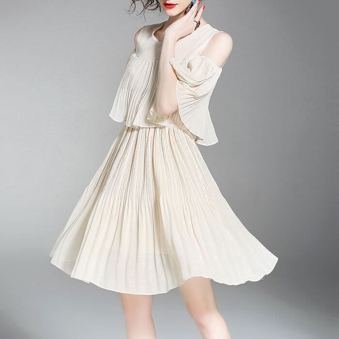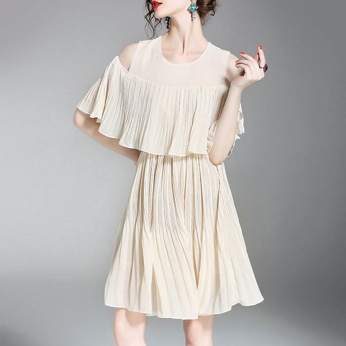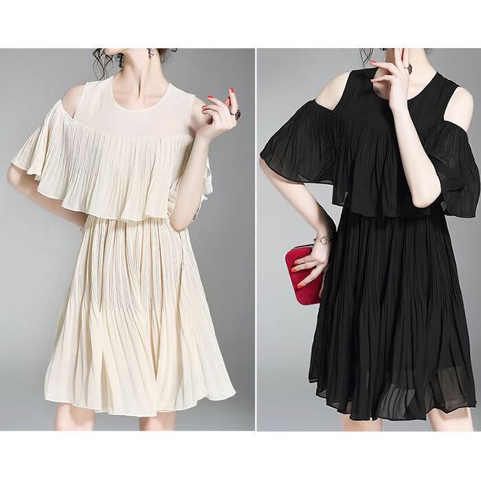 「破格」 ワンピース レディース プリーツ ふんわり 肩出し デート
