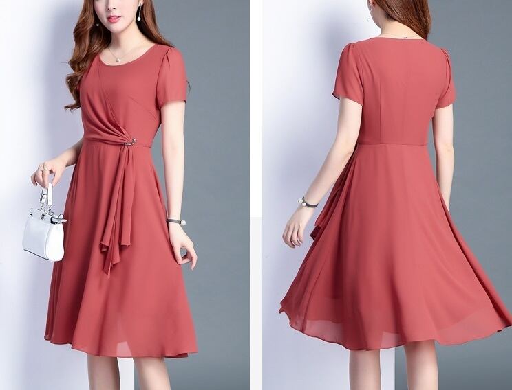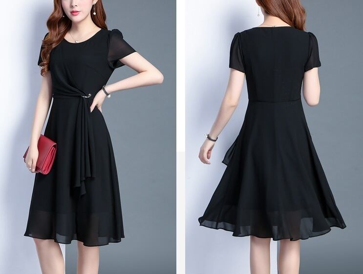 「破格」 ワンピース ラウンドネック ドレープ エレガント 通勤 二次会