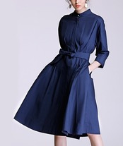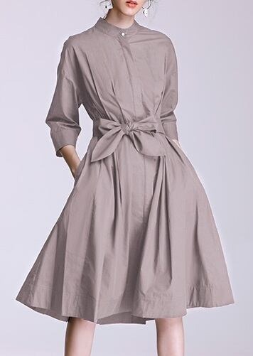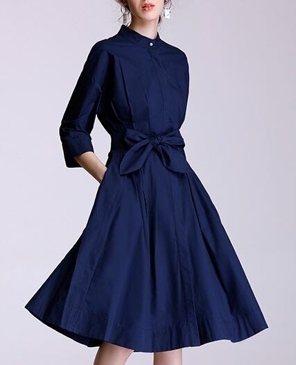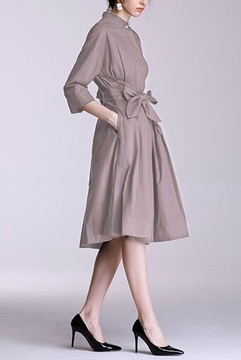 「破格」 ワンピース コットン バンドカラー リボン フェミニン 通勤