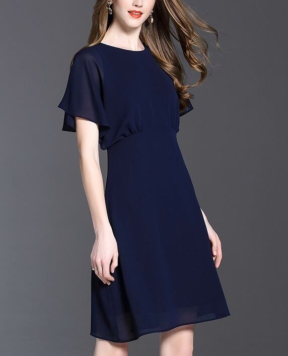 「破格」 ワンピース シフォン フレアスリーブ Aライン エレガント 通勤
