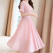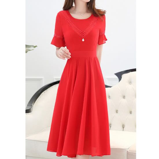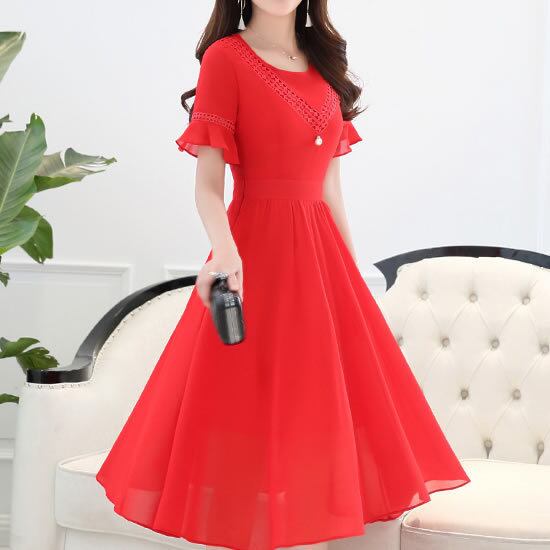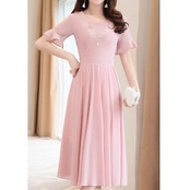 「破格」 ワンピース レディース 半袖 ラウンドネック 無地 エレガント