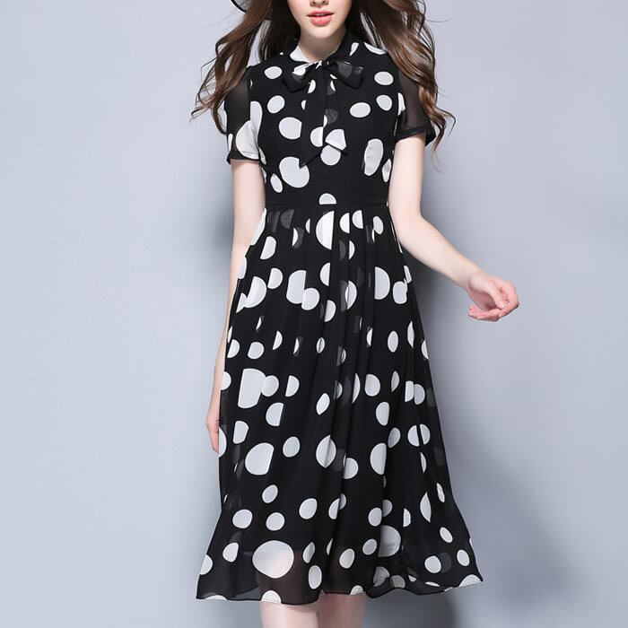 「破格」 ワンピース レディース 水玉 ドット リボン デート