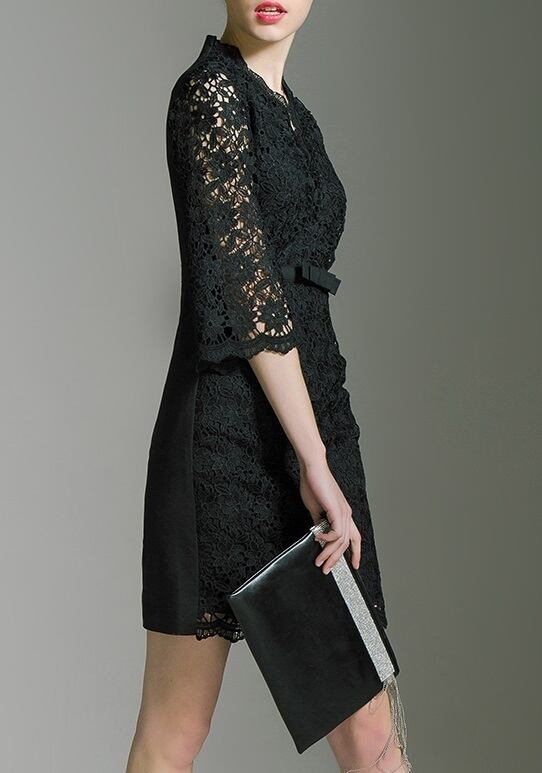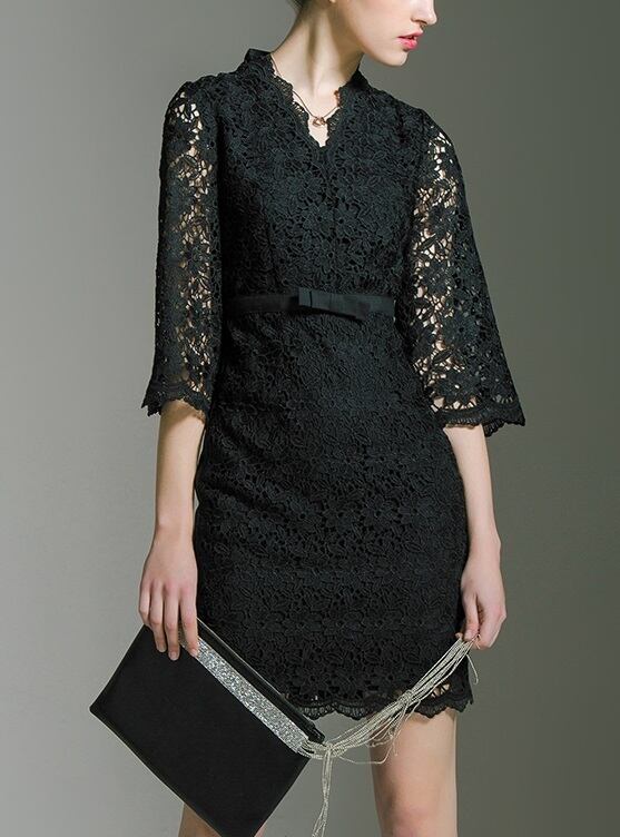 「破格」 ワンピース レース Vネック ベルスリーブ エレガント 二次会