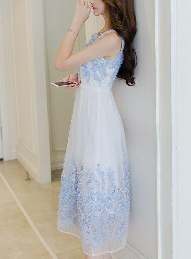 「破格」 ワンピース レース 刺繍 ノースリーブ フラワー フェミニン