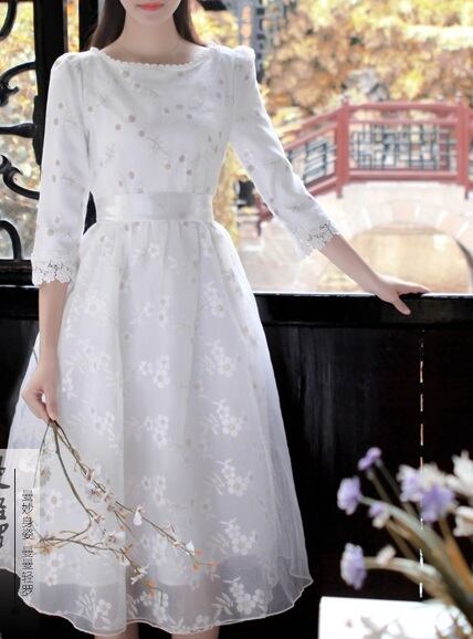 「破格」 ワンピース ラウンドネックフレア フラワー 清楚 ガーリー 通勤