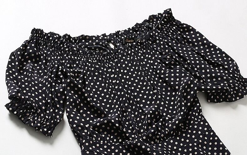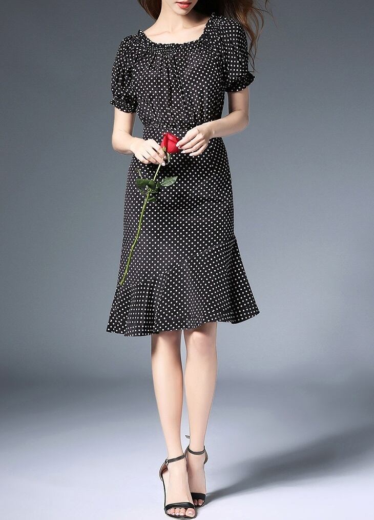「破格」 ワンピース ラウンドネック ポルカドット柄 フラウンス 通勤
