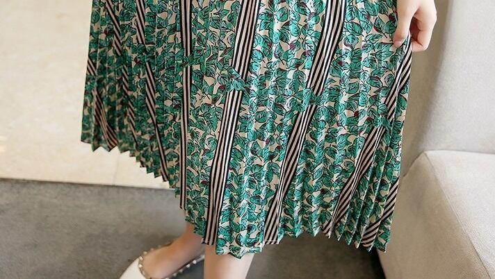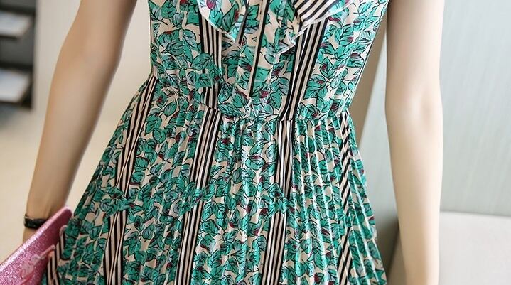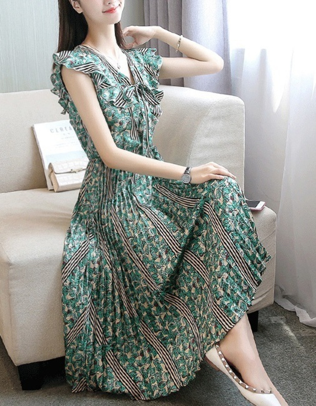 「破格」 ワンピース シフォン Vネック ノースリーブ ボタニカル ミモレ丈