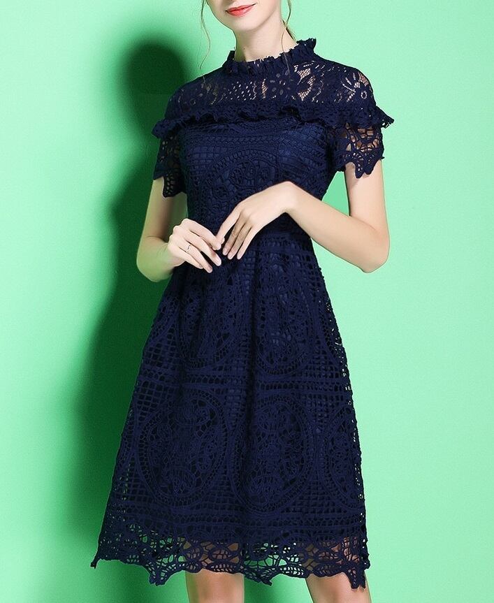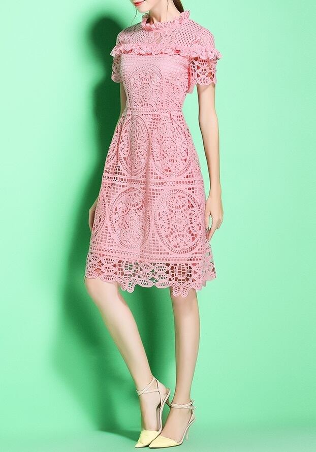 「破格」 ドレス ワンピ レース 透かし彫り ラウンドネック 半袖 二次会